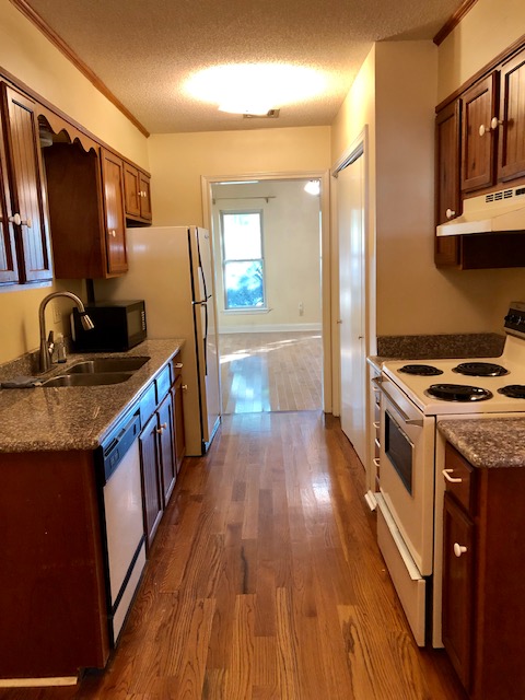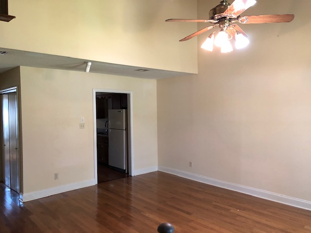 Cute townhouse with vaulted ceilings, fireplace with built-ins on one side. Wood and ceramic floors downstairs and carpet in upstairs bedrooms. Covered patio area and detached carport, parking in rear with storage building. Students-NO Pets-Maybe w/ $500 pet fee